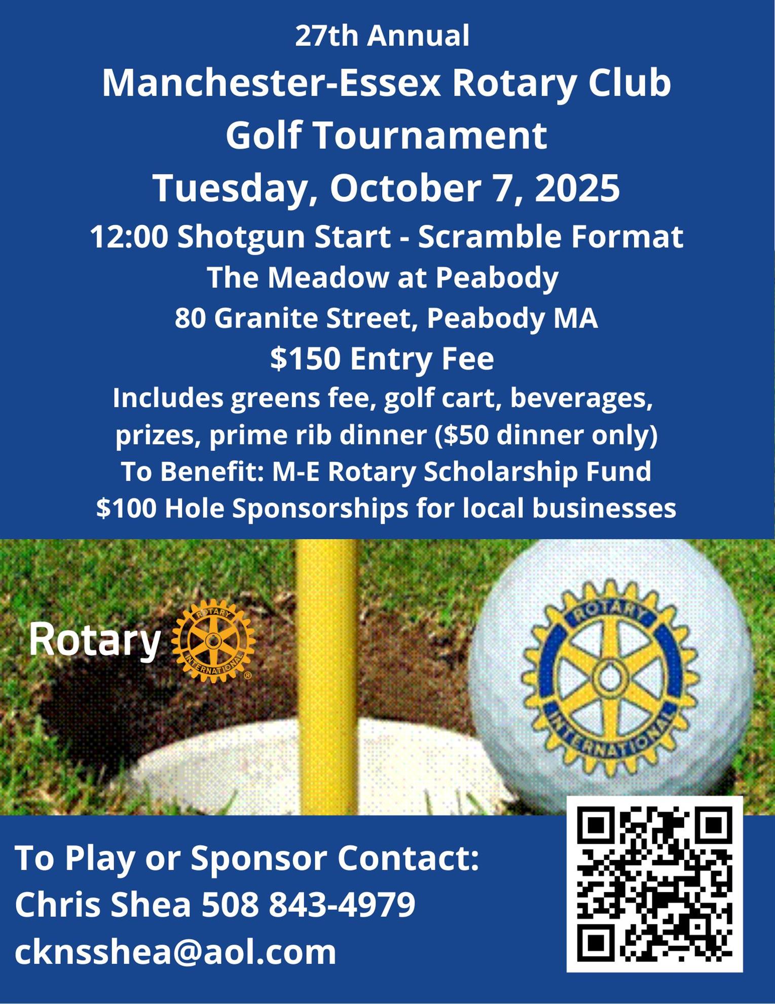 About the Manchester-Essex Rotary Club: Rotary is a global network of over 1 million neighbors, friends, leaders, and problem-solvers who come together to make positive, lasting change in communities at home around the globe – in the spirit of fun and fellowship. Chartered in 2002, the Club’s mission is community and international service with a motto of Service Above Self, and raises money through event fundraising to give about $40,000 away annually to local non-profits, community groups and schools including about $15,000 in high school scholarships. The Club gave away a record $50,000 in fiscal year 2025. The Club meets weekly and consists of over 40 members primarily from Manchester and Essex, and welcomes participation from all neighboring communities.