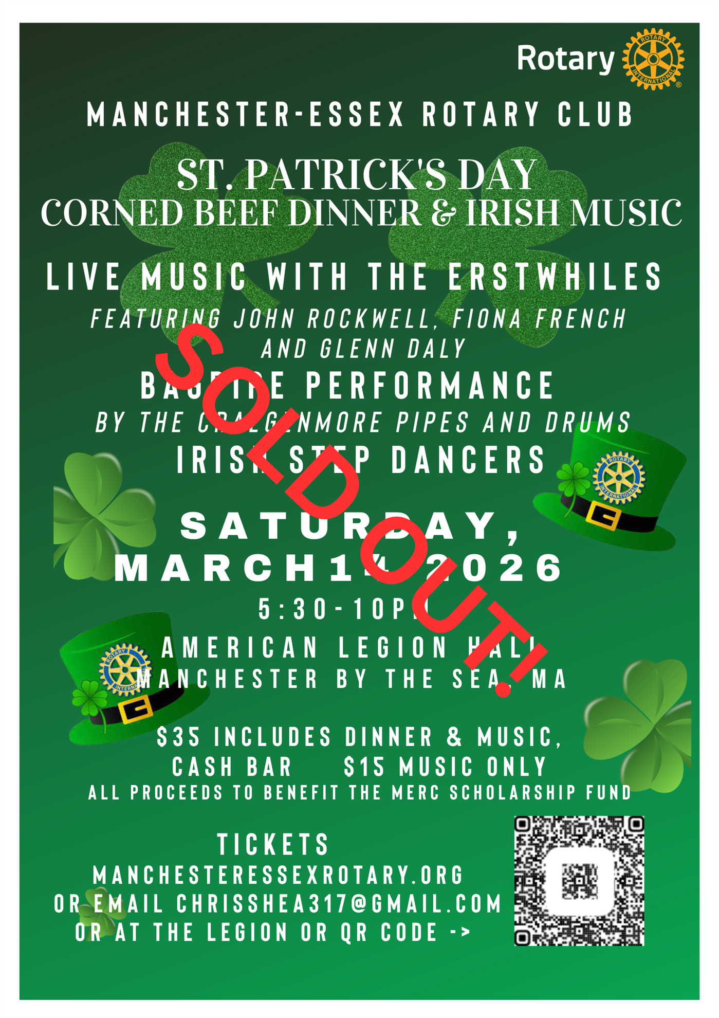 Dinner tickets are $30 pay on the payment button or follow the registration from our event to buy tickets or to sign up as a volunteer. Music only $10 at the door. Proceeds to benefit the Amaral Bailey American Legion Post 113, Manchester MA and the MERC Scholarship Fund. Legion members who purchase a ticket in advance at the Legion will get a $5 discount.